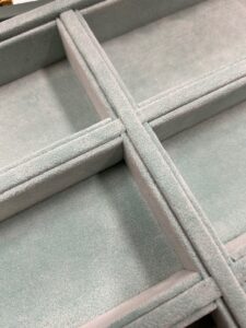 Il rivestimento tono su tono e le cuciture curate esprimono l’attenzione artigianale al dettaglio, mentre la struttura a doppio livello offre uno spazio funzionale ed elegante, con un vano inferiore più ampio per gli oggetti di maggiori dimensioni.